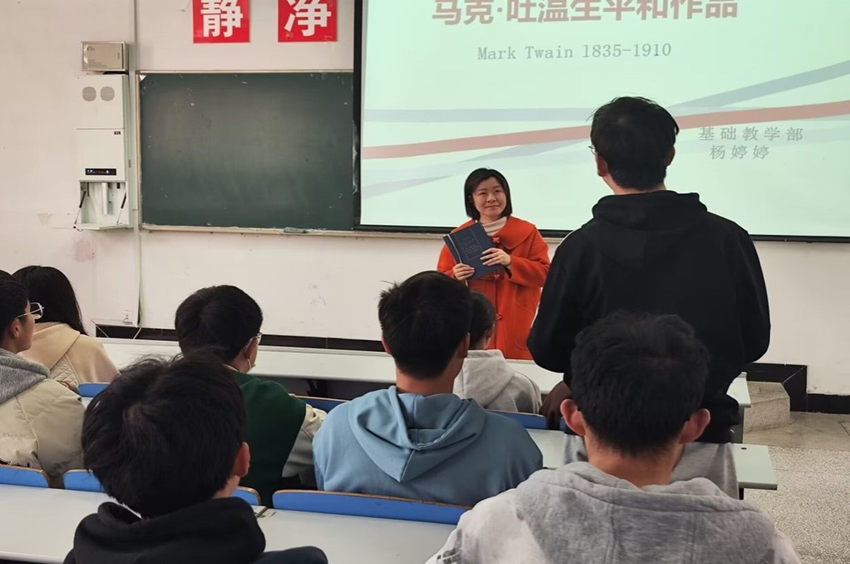 3月25日上午9:00,基础教学部在北阶102教室举办“马克吐温生平和作品”的学术讲座,清峰文学社社员及部分英美文学爱好者聆听了本次讲座,此次学术讲座由基础教学部副教授杨婷婷主讲。