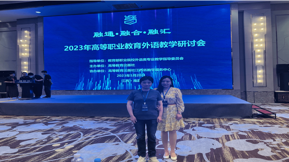 519日至21日,2023年高等职业教育外语教学研讨会在江西南昌顺利举行。会议由教育部职业院校外语类专业教学指导委员会指导,高等教育出版社主办,高教社江西省教学服务中心协办。基础教学部外语教研室郭敏、许欣两位老师参加本次专题研讨会。