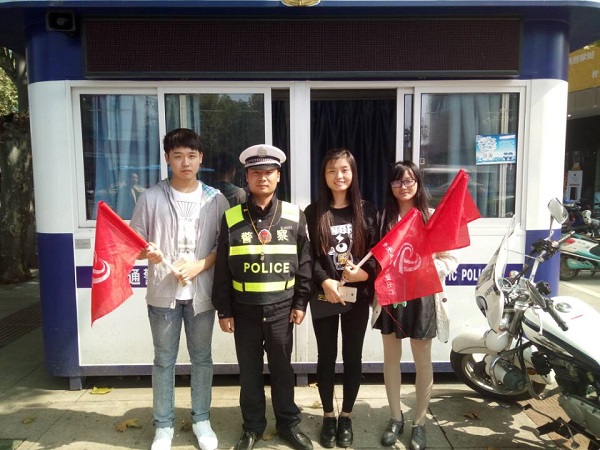 为了倡导文明出行的交通习惯,贯彻帮助他人、奉献社会的生活理念,2016年10月1日-15日,机电系团学干在天长东路与南谯北路交叉路口开展文明交通志愿行活动。