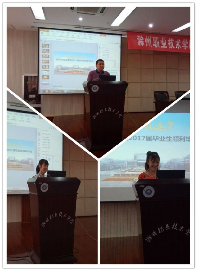 会前为毕业生专门制作了一份毕业纪念短片,希望2017届毕业生能够留下最美好的回忆。毕业典礼上,机电工程系副主任燕相松同志致辞,祝福广大毕业学子能够在工作中一帆风顺,前程似锦,事业有成。我系教师代表副教授冯巧红老师用毕业学长的一个小故事,让大家明白了拼搏的重要性,学生代表张宏影的发言,让大家脑海里浮现出三年来的点点滴滴,同时总结实习以来所遇到的问题。