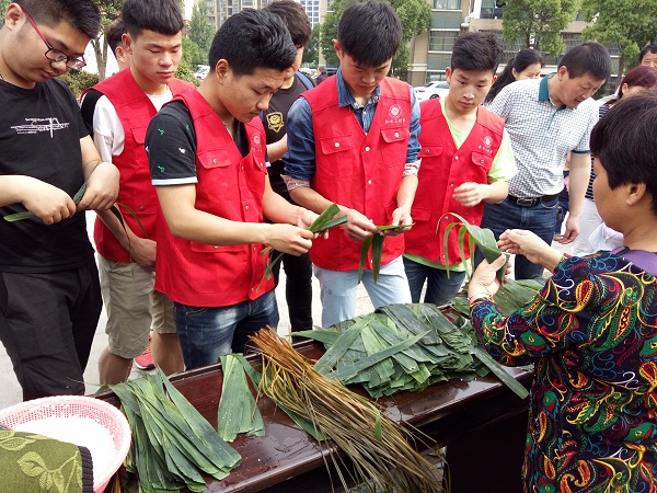 上午在社区书记的带领下志愿者前往孤残家庭。途中,志愿者们考虑到弱势群体的不方便,并且端午节即将到来,大家在龙蟠菜市场选购了新鲜的食材。到达孤残家庭以后,志愿者们为残疾老人送上了新的轮椅,并进行打扫等力所能及的事情。在方威同学的带领下志愿者们为老人包了新鲜的粽子。在一上午的忙碌后,大家与老人进行了告别,老人和志愿者们的脸上洋溢着满足的笑容。