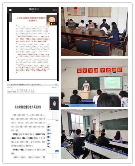我院高度重视疫情防控工作,多次召开全体教职工会议强调疫情防控工作的重要性,聚集全国疫情发展形势,结合学校疫情防控工作要求,积极传达疫情防控政策及相关会议精神,通过辅导员召开主题班会,引导和督促学生学习了《高校疫情防控警示教育典型案例》、《16种违反新冠肺炎疫情防控管理秩序行为及法律责任》、《滁州市新冠肺炎疫情防控应急指挥部(2022)第12号 关于依法履行参加核酸检测义务的通告》,及学生手册相关管理规定、校园文明16条等文件和通知精神,将学校疫情防控管理规定及有关制度要求传达到班级学生,确保人人知晓,人人支持、人人参与,人人执行。进而加强对学生的法制宣传教育宣传,提高学生疫情防护意识,进入公共场所要一律佩戴口罩,做好个人防护,教室宿舍要经常通风、每天按时完成今日校园打卡,严格执行学校封闭管理制度;严格请销假制度、每日排查制度和晨午晚检制度。