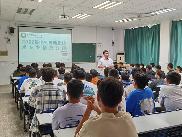 此次新生教育活动是由各专任教师主持的专业介绍,主要由朱山川、张小光、卢干和李朋老师分别对光伏工程技术、工业机器人、机电一体化技术和电气自动化技术四个专业进行深入系统的介绍。四位老师主要从专业培养计划、专业培养目标以及就业去向等方面介绍各个专业情况,并对学生提出的相关问题进行专业解答,同时强调学生需要加强硬技能训练、训练思维能力、提升自主学习能力、提升自我管理能力的重要性。