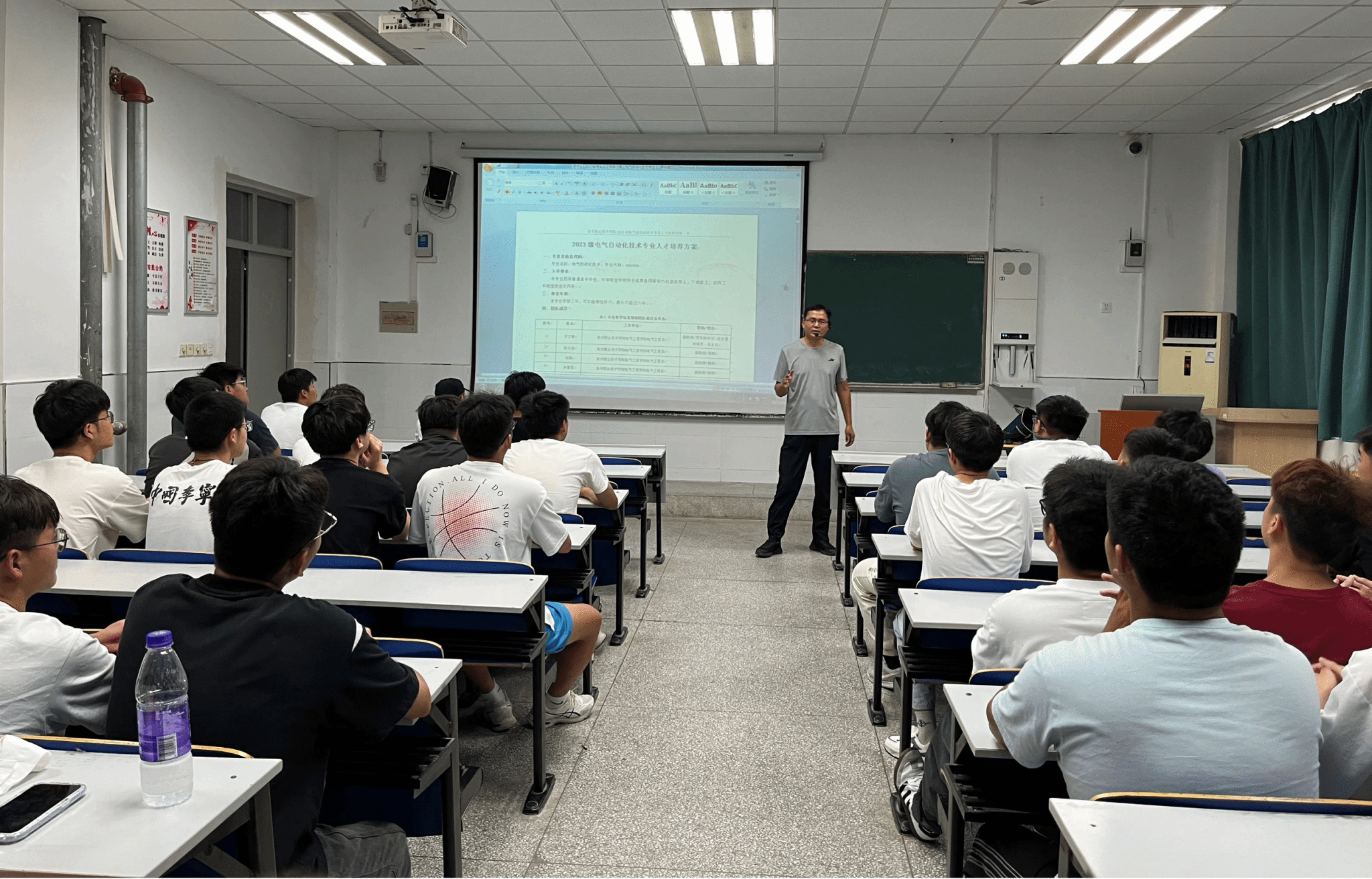 根据人才培养方案要求,为使2023级新生更好地了解自己就读专业的相关情况,提前做好三年大学学习规划和目标。电气工程学院要求各系各专业负责人要高度重视,认真组织,确保让每一位新生了解所学专业情况。9月10日下午,电气自动化技术、机电一体化技术、工业机器人技术、数控技术等6个专业开展新生入学专业教育工作。