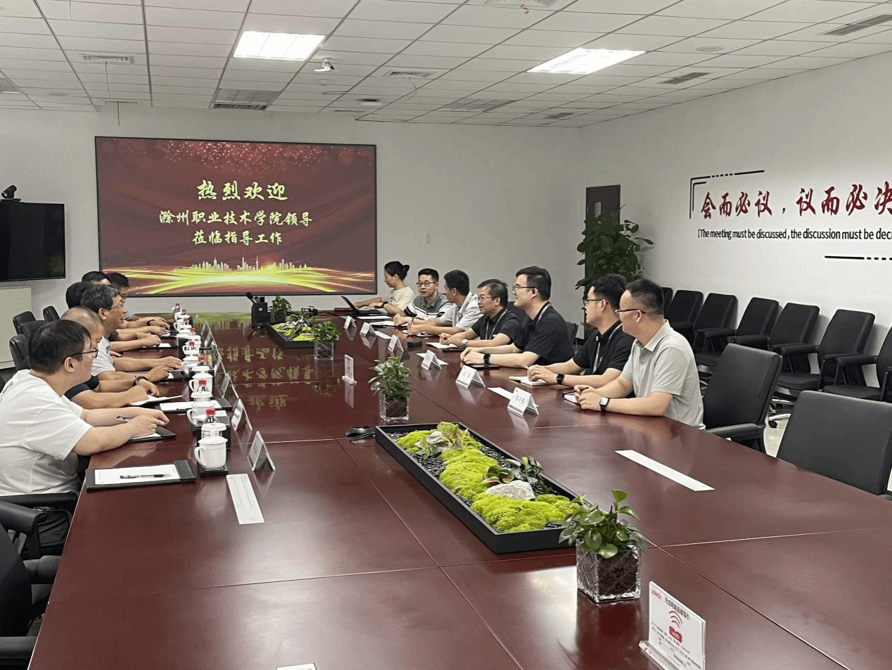 会议最后,苏有良进行了总结,他对滁州隆基乐叶光伏科技有限公司对校企合作办学的重视和支持给予了充分肯定和感谢;希望在双方的努力下,将双方的校企合作办学打造成地方、区域甚至于全国的样板;并邀请滁州隆基乐叶光伏科技有限公司的企业人员经常到学校参与现代学徒制班教学工作。
