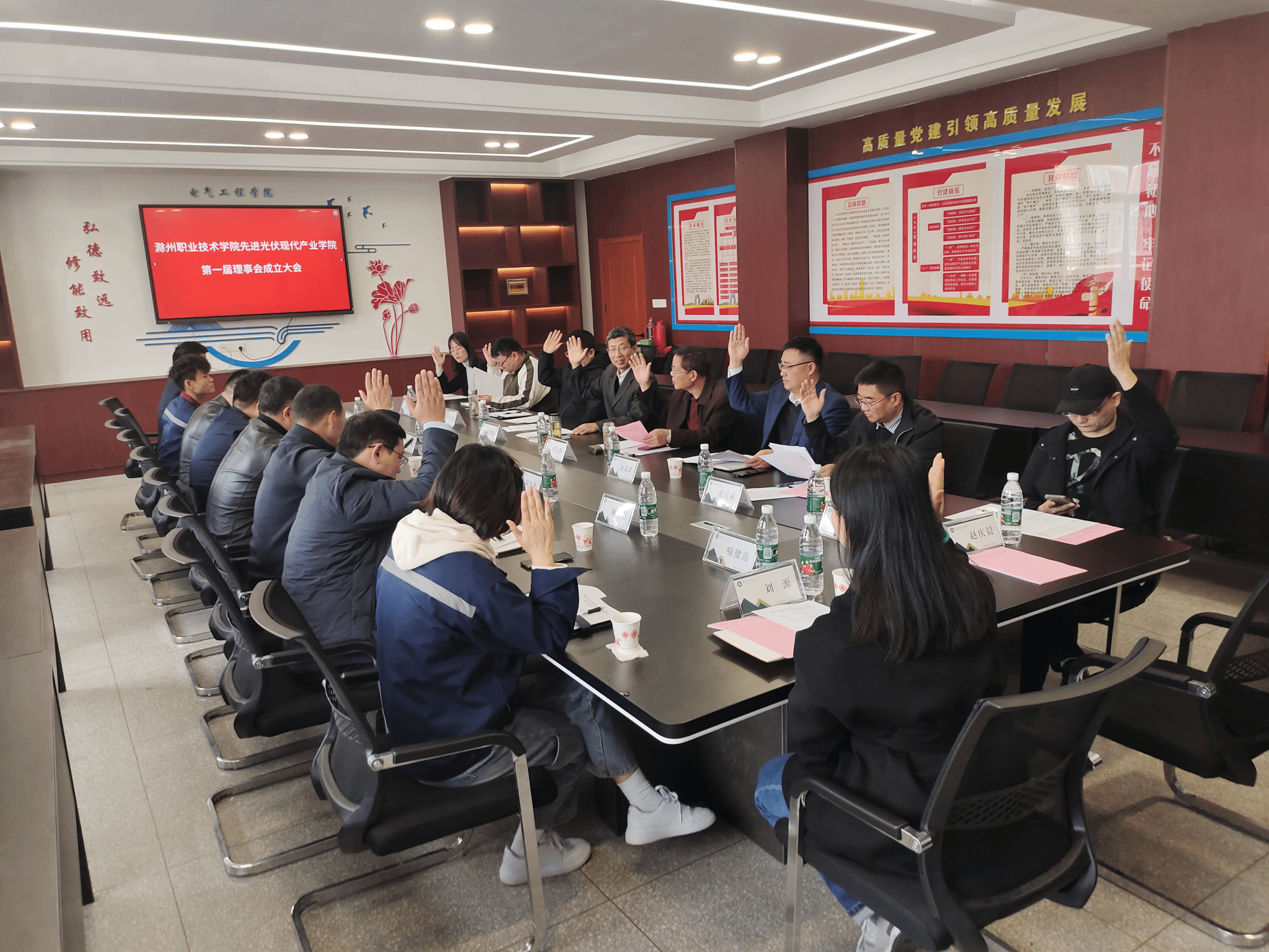 会上,电气工程学院院长张信群宣贯《安徽省教育厅关于公布2023年度省级职业院校现代产业学院立项名单的通知》,并详细介绍了产业学院的基本情况、建设思路、建设成效、存在问题与困难以及下一步打算。与会理事会成员在听取相关介绍后先后发言,对学校成立先进光伏现代产业学院,推进产业学院建设,健全产业学院理事会治理模式,给予了高度评价。理事会成员审议、表决通过了《Beat365唯一官方网站先进光伏现代产业学院理事会章程》。