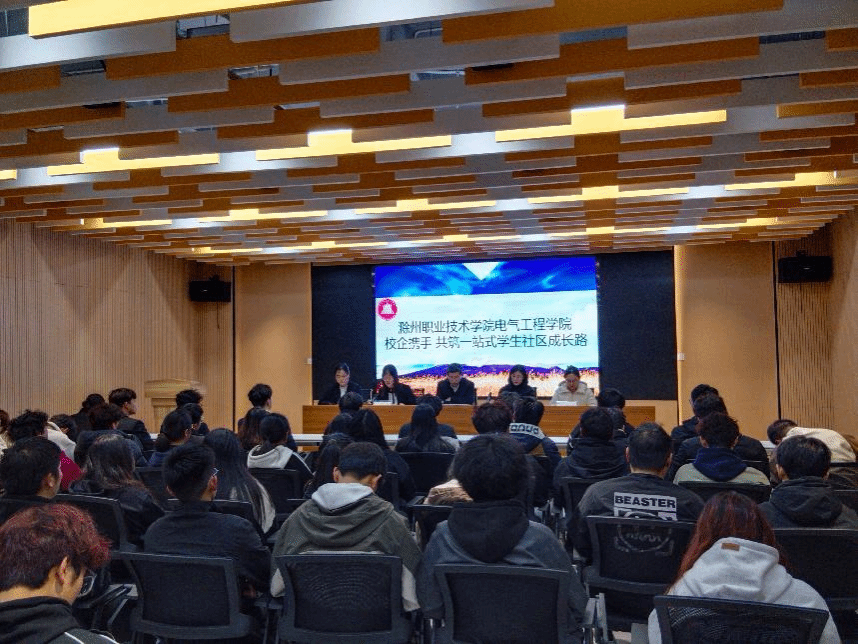 随后企业导师与专业教师进驻一站式社区活动正式启动。此次活动邀请了滁州隆基乐叶光伏科技有限公司的企业代表和光伏专业教师担任导师。会上,企业导师徐雪介绍了光伏产业以及隆基乐叶公司的发展情况,专业教师陶璐介绍了先进光伏现代产业学院的建设情况。她们均表示将在理论知识、科研方法以及行业动态、项目实战技巧等方面为学生提供全面指导,帮助学生更好地了解市场需求,明确职业发展方向。
