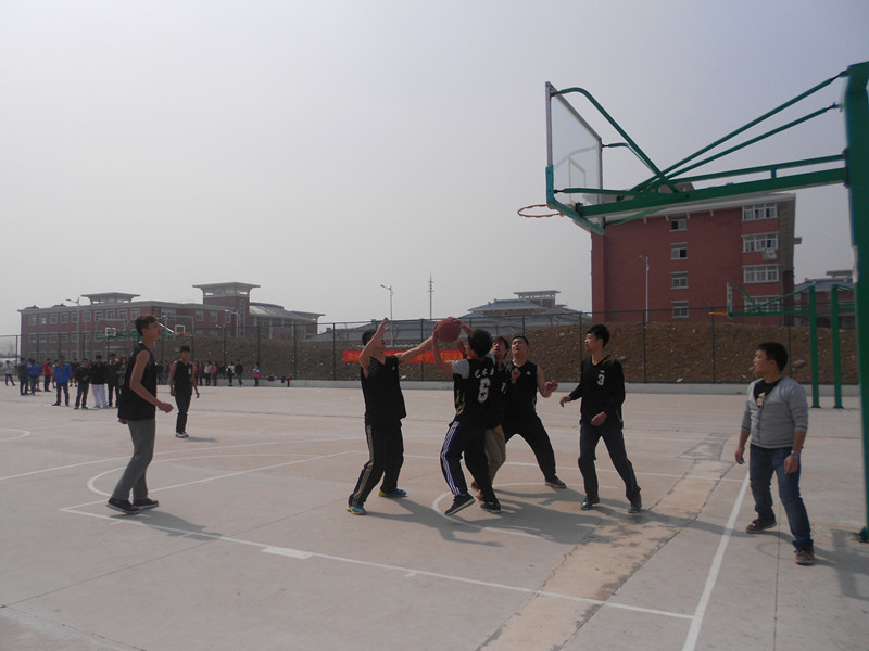 球场波涛,谁属英豪。2014年3月10号下午,机电系在学院篮球比赛中迎战艺术系。我系最终以67:31的好成绩获胜。