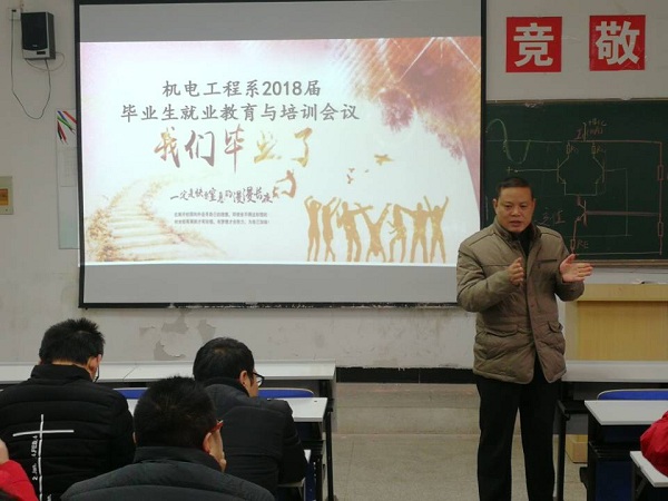 为了使毕业生更快更好就业,为步入社会做好充分准备。机电工程系于2017年12月13日下午1点在5103教室开展18届毕业生主题班会。我系党总支书记晋太洋、党总支秘书冯早红、教师张文磊出席。