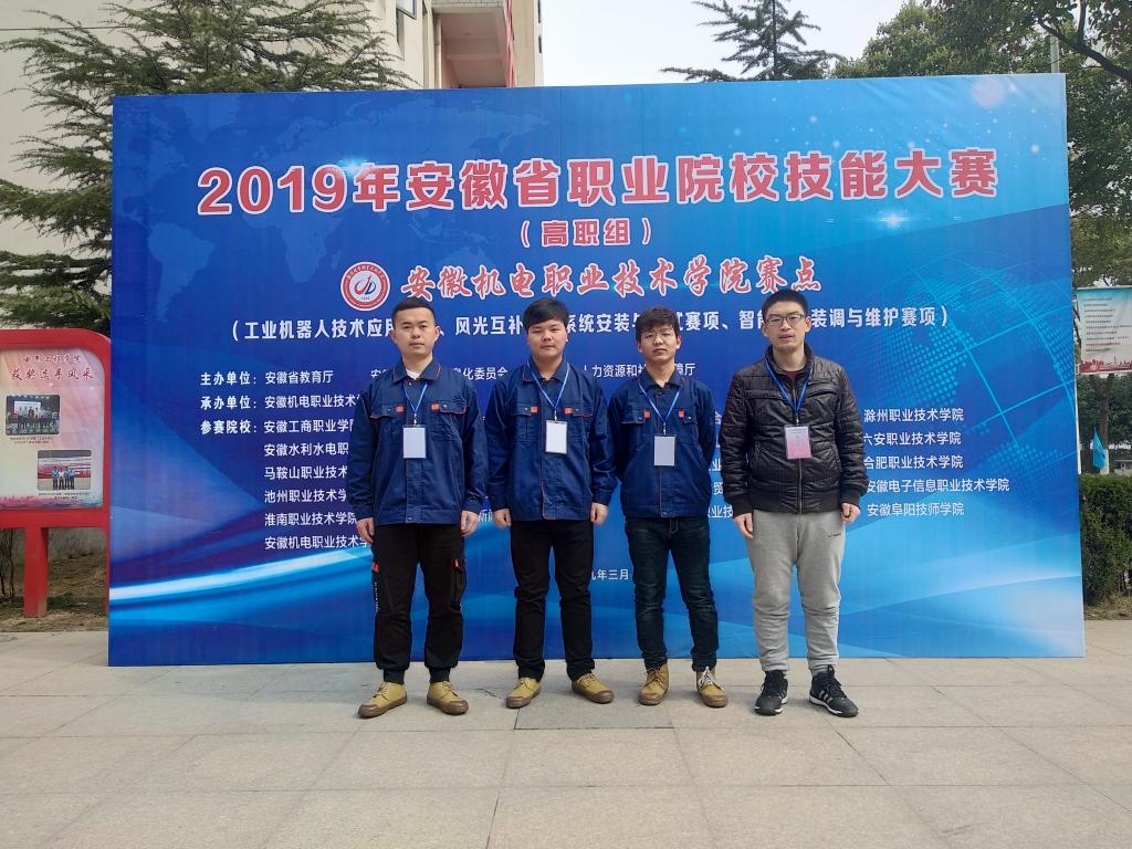 2019年安徽职业院校技能大赛(高职组)“工业机器人技术应用”比赛于3月22日至24日,在安徽机电职业技术学院(芜湖)隆重举行。由机电系智能制造教研室谭志银、杨思国、殷大澍、周华龙等4名老师指导分别参赛一队、参赛二队共计6名学生参加比赛,其中参赛一队参赛选手为2016级工业机器人专业的曹新飞、王平、徐功平三名同学,参赛二队为2018级工业机器人专业的王正、潘篇同学和2018级机电一体化专业的杨雨昊同学。本次竞赛共有来自全省的27支高职院校参赛团队。