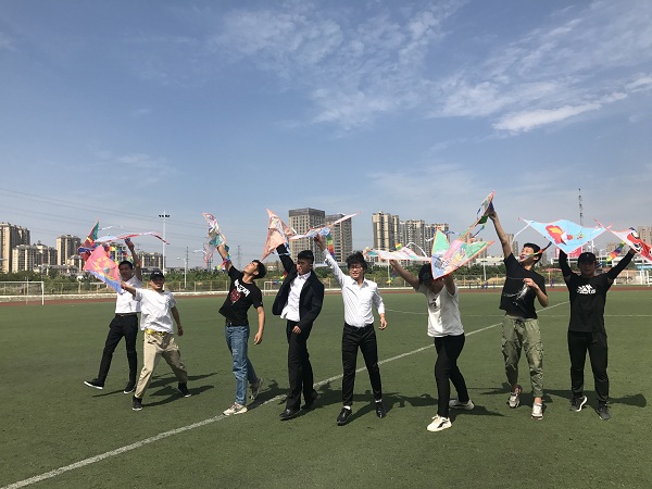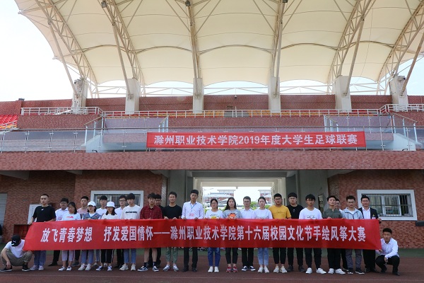 为弘扬爱国主义精神,丰富校园文化5月21日中午1点在由校团委主办、机电系承办的以“放飞青春梦想,抒发爱国情怀”为主题,校第十六届校园文化节之手绘风筝大赛在小操场举办,来自各系共11支队伍参赛