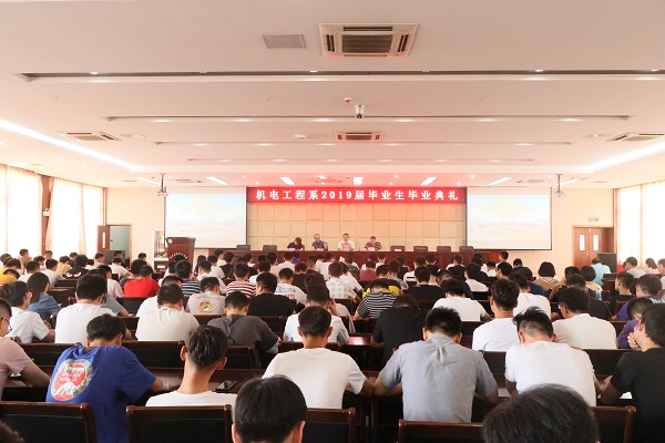 “愿你一路前行,不忘少年梦”,6月25号上午11点,机电工程系2019届毕业典礼在校综合楼5楼报告厅隆重举行。机电系党总支书记晋太洋、副主任燕相松、实训中心主任王晓明以及毕业班辅导员和教师代表出席典礼,全体毕业生参加。典礼由系团总支书记张文主持。