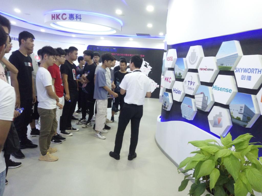 同学们参观了惠科公司的科技馆、食堂、商业街、宿舍等地方,在科技馆,讲解人员地介绍了惠科股份有限公司的概况、发展历史、主要产品与业绩,使学生们切身感受到高新科技对生产力的巨大推动作用。