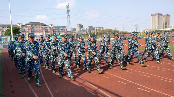 为期12天的军训已经接近尾声,我19级新生各个挺直腰板、精神饱满的在教官认真指导下整理军容着装,练习基本口令,有力的踏着正步。短短几天时间,齐步走、正步走、齐步变正步、解散、集合等训练科目已初见成效。教官手把手教,学生认真的学,尽管赤日当空,但他们充满了斗志和信心,在绿色的草地上,一群身穿迷彩的活力青年用铿锵有力的步伐、激昂响亮的口号展现着新时代大学生的风采。