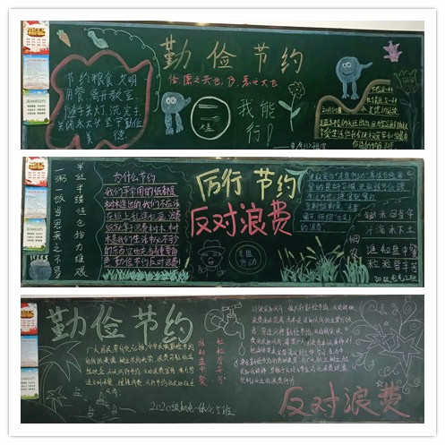 为了弘扬中华民族勤俭节约的传统美德,引导学生树立节约观念。电气工程学院团总支于近日组织20级各团支部开展“厉行节约,反对浪费”主题黑板报评比活动。