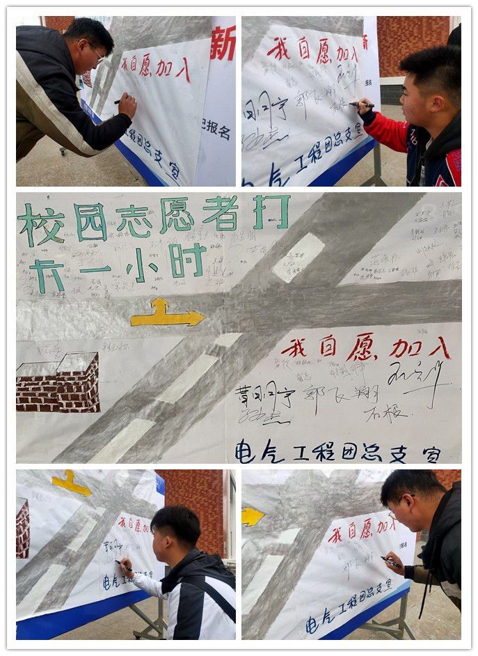 本次活动旨在动员我院团学青年积极行动起来,以个人参与的形式于16日至25日十天内,立足校园,进行美化校园环境、爱护公共设施、节约资源、杜绝浪费、助人为乐等志愿服务行为,进一步加强我院团学青年劳动光荣的理念,培育社会主义核心价值观。大家踊跃在“校园志愿服务一小时”宣传展板上签名,表示“我参与,我践行”,传承雷锋精神,共创文明和谐校园。