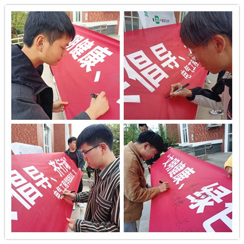 我院团总支副书记刘俊良从“讲文明、铸健康、守绿色、重环保”四个方面向同学们讲述如何在日常生活、工作和学习中积极践行文明健康、绿色环保的生活方式,加强节约意识、环保意识和生态意识。接着大家观看了今年的爱国卫生月宣传视频;最后我院团学青年在宣传条幅上签上自己的名字,表示会积极行动起来,倡导、践行“文明健康、绿色环保”的生活方式,维护自己和家人的健康,共同守护美丽家园!