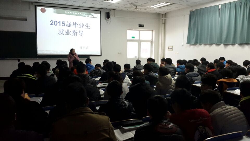 为了帮助学生结合自身的实际情况选择适合自己的职业发展路径和求职方法,做好入职前的准备工作,2014年11月5日下午4:30,机电系毕业班辅导员冯早红给12级电气班、12机电3班、12机电5班三个班开了一场毕业生就业指导主题班会,三个班全体同学到场聆听。