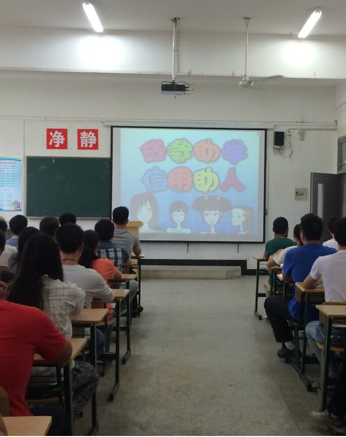 讲座中,冯老师向同学们介绍了关于助学贷款的一些相关知识。然后,又通过播放“贷款助学 信用助人”视频的方式,向同学们更加详细地介绍了助学贷款的知识以及贷款中该注意的事项,应诚信做人,按时还贷款,保持一个良好的个人信用,做一个诚信的人。