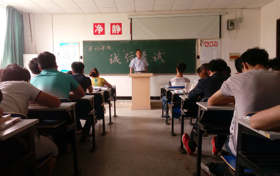 期末考试即将来临,为了让更多的学生明确学习目的,提升自身素质,把握住诚信的主旋律,传递更多的正能量,2015年6月18日机电工程系党总支书记晋太洋为14级电气自动化专业的全体学生展开了一次以“诚信考试”为主题的书记讲规。