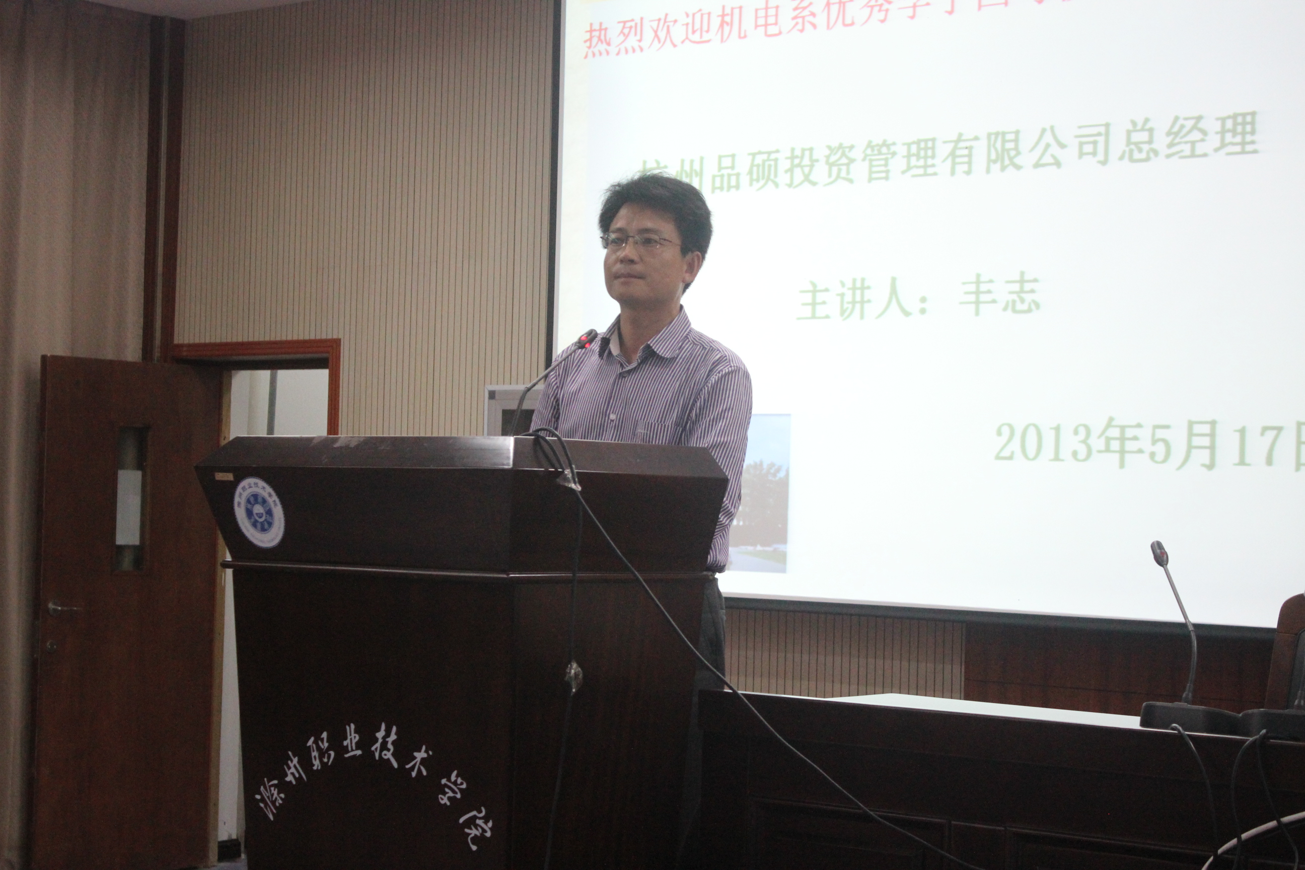 2013年5月17号晚7点在综合楼五楼报告厅,机电系举办成功学长专题报告会,机电系党总支书记苏有良主持会议并发表讲话,机电系和汽车系12级新生及相关辅导员到现场听取报告。