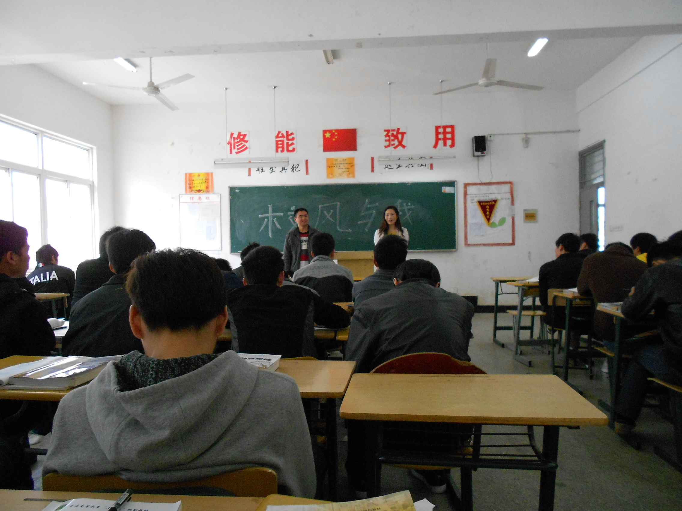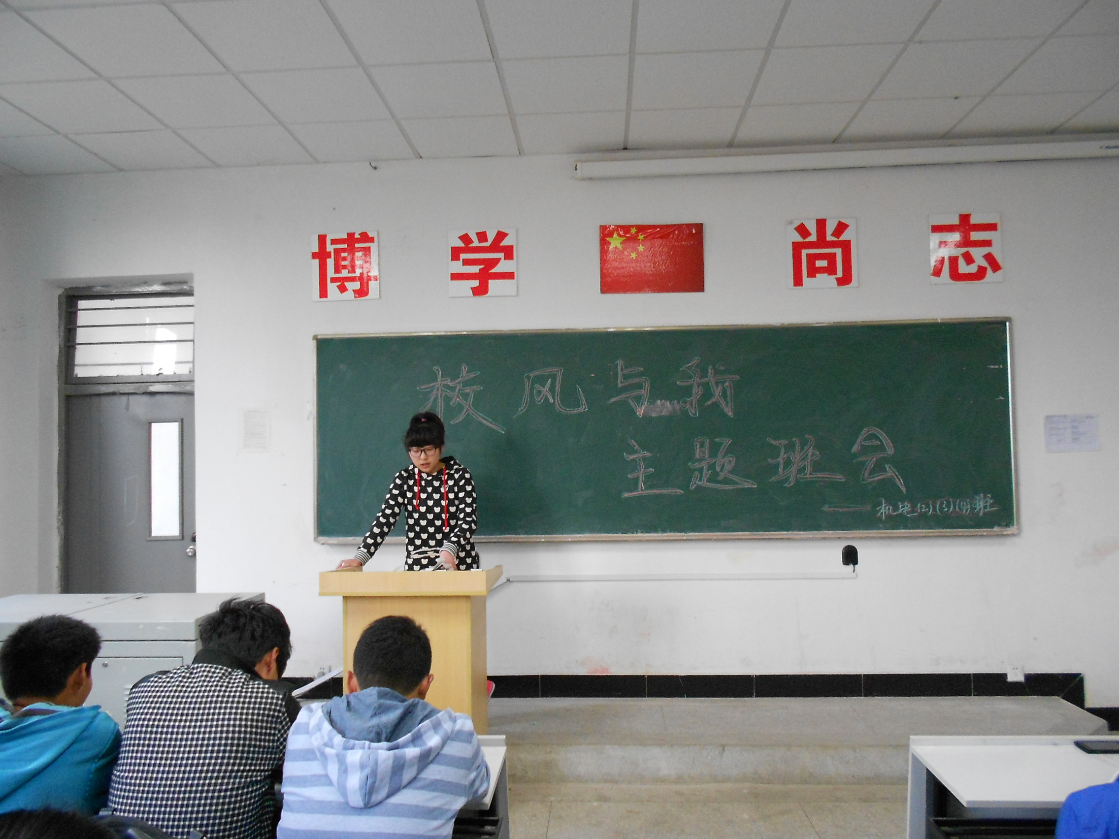 班会上围绕“校风与我”活动年的主题,同学们从纪律、风化、和校园准则等方面展开讨论,大家结合自身实际,纷纷上台发言,列举了当前学生中还存在各种不良风气,如在学习上还有同学学习不够认真,上课迟到、早退、甚至旷课等现象,在生活中个别学生不能严格遵守寝室6S管理,给同学们生活带来安全隐患,爱护公物不够,课间抽烟现象严重等不良风气。对这些现象纷纷发表自己的看法和见解。