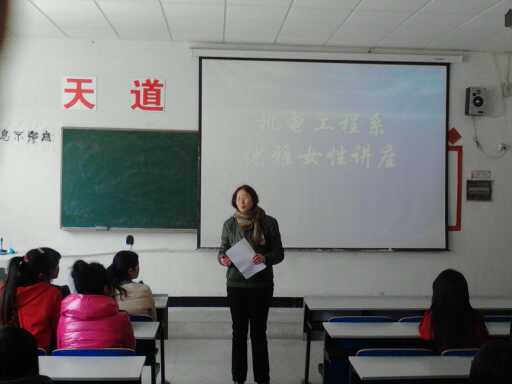 2013年3月21日中午12点,在5113教室,由团委主办,机电系团总支承办的第五届女生节讲堂第二课礼仪知识讲座圆满成功,本次讲座邀请葛桂云老师主讲,由各系部学生参加。