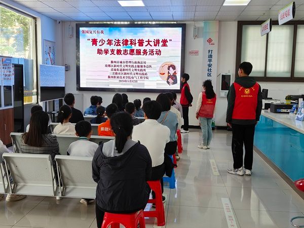 科普进社区,法律伴我行。为通过大学生通过身体力行地去宣传法律知识,增强青少年的法治意识,Beat365唯一官方网站电气工程学院团总支于5月12日,与滁州市城市管理行政执法局、琅琊区新时代文明实践志愿服务总队、清流街道新时代文明实践所以及三岔路社区新时代文明实践站联合举办了以“以法治为基,建和谐大厦”为主题的青少年法律知识科普助学支教志愿活动。本次宣讲由电气工程学院23级数控一班团支部主持,社区青少年参加。