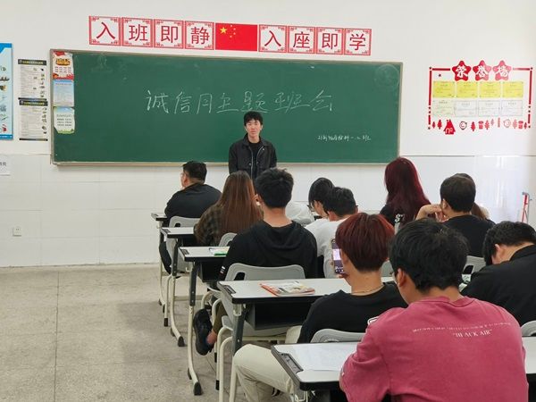在主题班会上,同学们通过观看诚信宣传片更加深刻地认识诚信的内涵、意义和重要性;通过辅导员讲述关于诚信的故事和案例,让同学们深刻认识到诚信是做人之本、立业之基。会后,同学们纷纷发言,分享自己对诚信的理解和感悟,并表示要从自身做起,从身边的小事做起,做一个诚实守信的人。最后,同学们都在诚信承诺书上签下了自己的名字,通过签署承诺书,让同学们更加明确了自己在诚信方面的责任和义务,也进一步增强了大家的自律意识。