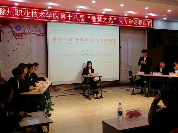 学院第十五届校园文化节之第十八届“智慧之光”大专辩论赛决赛于2018年5月23日晚七点在南阶203教室举行,机电系通过两轮淘汰赛顺利进入决赛,由谢文平、程娟、管浩楠,杨潇四人代表参赛。