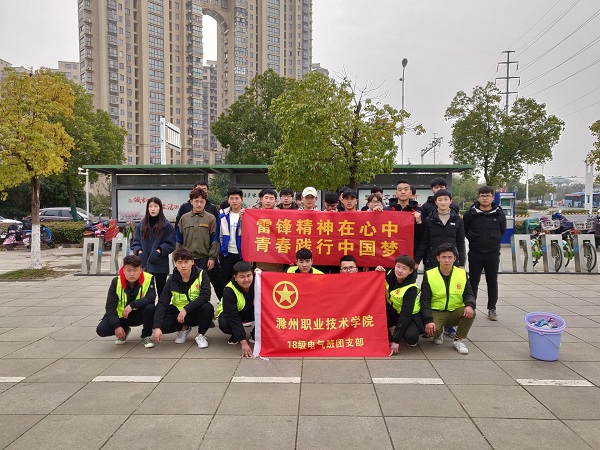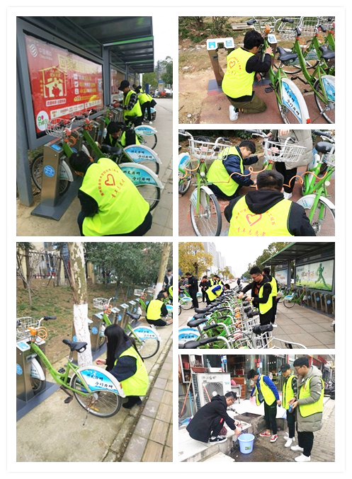 为深入开展学雷锋活动,倡导志愿者精神,3月9日上午,机电系18电气团支部20余名志愿者走上街头义务清洗公共自行车,为建设和谐美丽滁州奉献力量。