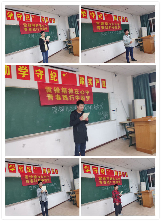 为了弘扬和学习雷锋精神,近日,机电系18机电(1)班团支部在5102教室举办了以“雷锋精神在心中,青春践行中国梦”为主题的诵读活动。