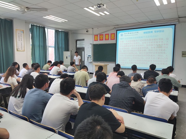 宣讲内容主要包括:1.基本征信知识,通过对典型案例的分析,让学生了解个人征信的重要性以及对未来学习工作的影响;2.讲解农信社和国家开发银行的还款流程,提前为来年的毕业生助学贷款网上确认做好准备工作。宣讲结束后,所有助学贷款学生都签署了“生源地信用助学贷款诚信承诺书”,并进行了宣誓。