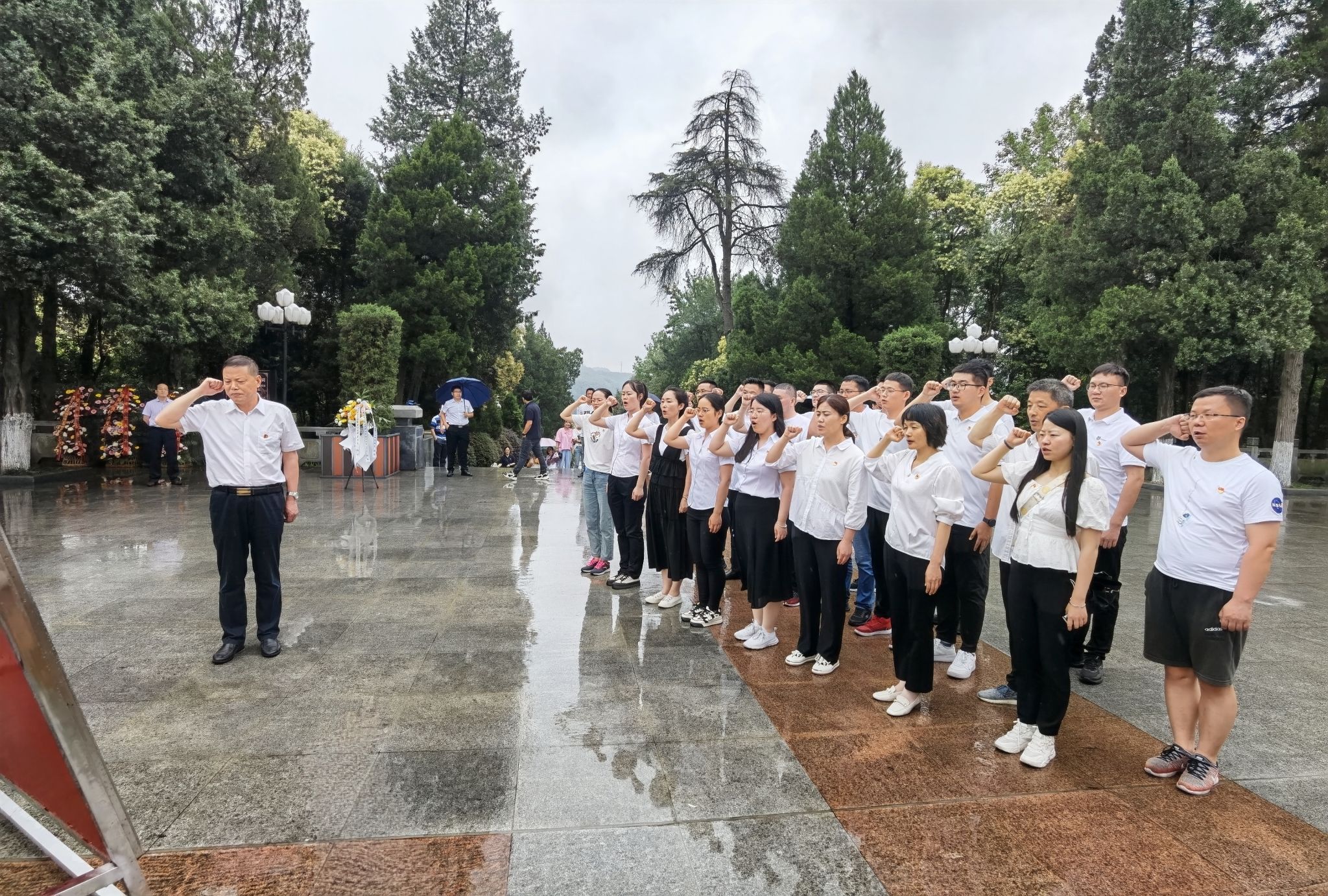 一寸山河一寸血,一抔热土一抔魂。17日全体人员伫立在革命烈士纪念碑前,向革命先辈默哀致敬,并敬献花篮,寄托对革命先烈的深切缅怀。随后在党总支书记晋太洋同志的带领下,大家整齐列队、面对党旗、高举右手,重温入党誓词,用激昂的誓言、铿锵的呼声,表达了永远感党恩、听党话、跟党走的坚定理想信念。