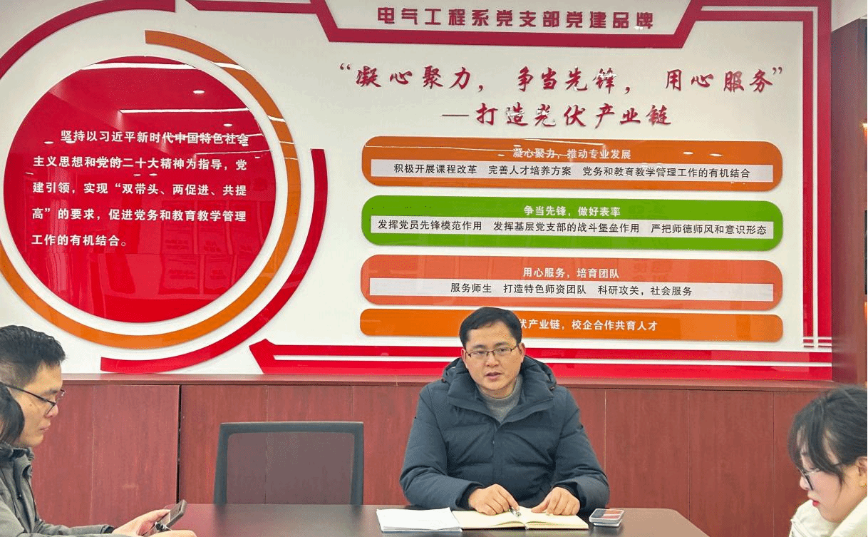 会议第一项,支部书记李文萱做述职报告。李文萱同志代表电气工程系党支部作检视剖析发言,阐述过去一年支部的成果和问题,并针对这些问题提出有效的整改措施,激励各位党员共同努力使电气工程系党支部的党建和系部工作更上一个新台阶。