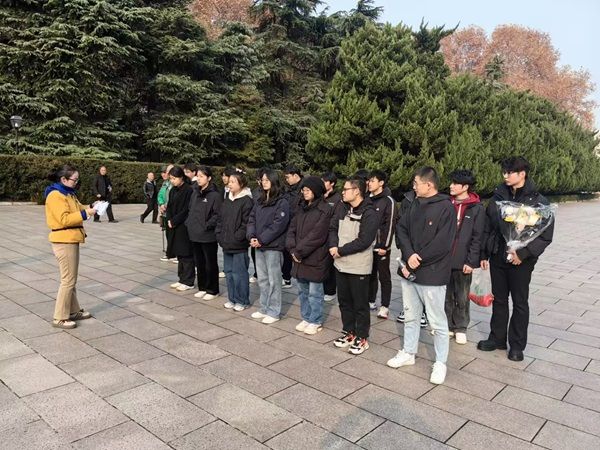 清晨的阳光洒在南京雨花台烈士陵园,松柏苍翠,庄严肃穆。学院师生整齐列队,怀着无比崇敬的心情,在早晨十点的警鸣声中面向烈士群雕塑低头默哀,表达无尽的哀思。在庄严肃穆的雨花台烈士纪念塔前,学院师生举行了敬献花篮仪式,花篮上鲜红的缎带在微风中轻轻飘扬,寄托着我们对革命先烈们的无限敬仰与深切缅怀。随后,支部书记现场讲授党课,带领师生回顾革命历史,缅怀先烈英勇事迹,激励师生传承与弘扬雨花英烈精神。最后,在烈士纪念馆内,师生们深入参观学习,并在参观后围坐交流研讨,分享心得感悟,深刻领悟红色文化内涵与时代价值。