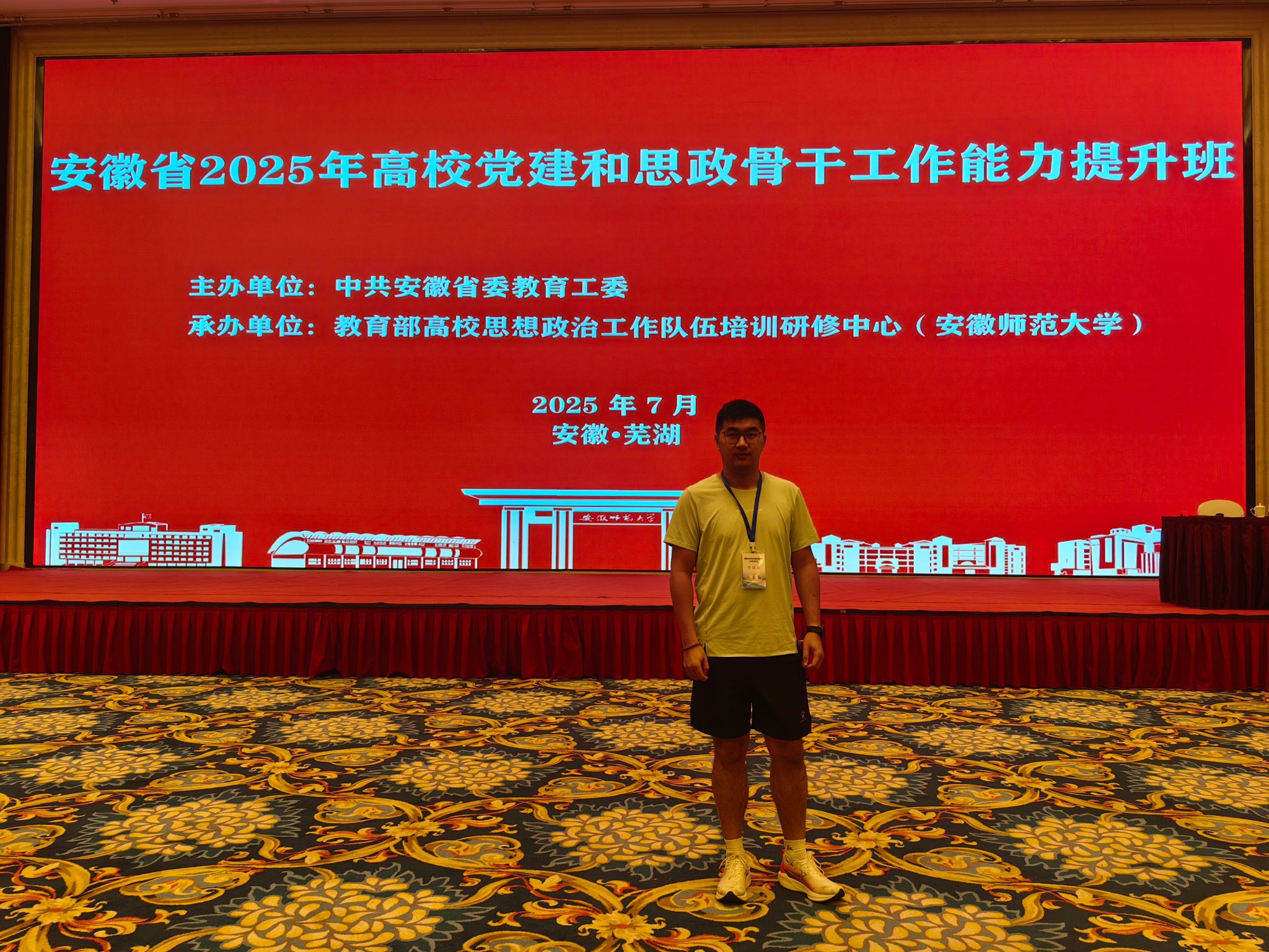 为深入学习贯彻习近平新时代中国特色社会主义思想,全面落实党的二十大和二十届二中、三中全会精神,深入实施“时代新人铸魂工程”和新时代立德树人工程,全面提升高校思想政治工作队伍素质能力,切实推动高校思想政治工作高质量发展,根据《中共安徽省委教育工委关于开展2025年全省学校思想政治工作队伍培训工作的通知》(皖教工委函 〔2025〕 93号)要求,7月25日至28日,教育部高校思想政治工作队伍培训研修中心举办了安徽省2025年高校党建和思政骨干工作能力提升班专题培训。电气工程学院团总支书记臧铭参加此次培训,与全省高校思政工作骨干共同学习交流,探讨新时代高校党建与思想政治工作的创新路径。