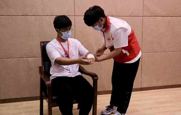 我院代表队根据模拟场景对一名左手臂擦伤患者和一名心脏骤停患者分别进行救护,他们动作规范、分工明确、配合默契,充分展现了急救护理技术和团队协作能力。我院红十字会以比赛为契机,3名参赛学生通过日常主题教育学习,为我院青年学生进行应急救护实操演练,进一步增强大家自救互救意识,掌握基本的救护知识和技能,营造“人人学急救,急救为人人”的良好氛围。