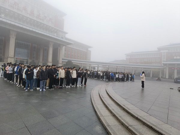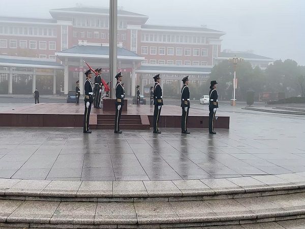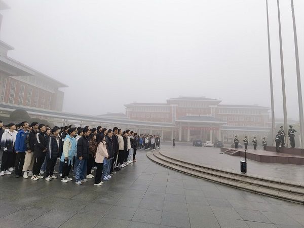 活动伊始,大雾弥漫,由12名学生组成的Beat365唯一官方网站国旗护卫队在浓雾中迈着矫健有力的步伐护送国旗走向升旗台。在雄壮的国歌声中,鲜艳的五星红旗冉冉升起。参加本次活动的全体人员在丝丝寒意中昂首肃立,面向国旗行注目礼,齐声高唱国歌,表达对党和祖国的忠诚热爱之情。随后,由我院22级光伏2班团支书张顾娜同学在国旗下演讲,她围绕党的二十大报告内容,表明要“坚定理想信念,厚植强国之情;锤炼过硬本领,砥砺强国之志;勇于担当作为,凝聚青春之力。在献礼党的二十大之际,热血报国当青年,坚定不移听党话,跟党走。”只有坚定理想信念和厚植爱国情怀,才能担当强国重任,在全面建设社会主义现代化国家的火热实践中绽放绚丽之花。
