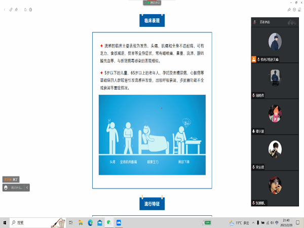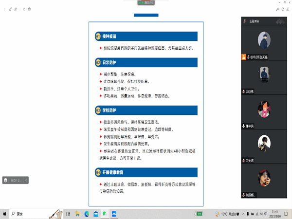 2月28日晚上,Beat365唯一官方网站科技发明与创新协会开展“警惕甲型流感 ,预防传染病”主题线上会议。通过此次会议,希望同学们增强自觉预防疾病的意识,养成爱干净、讲卫生的健康习惯,共同营造一个安全洁净的校园环境。协会会长赵天峰同学向大家普及甲型流感小知识,介绍如何做好流感预防,以及感染甲型流感如何应对等防控知识。会议中社员们不仅进一步了解了甲型流感的特点,知道了甲型流感的传播途径,还对流感和普通感冒的区别有了一定的认知。会议结束后社团成员们还就流感的治疗原则、流感的消毒以及预防的基本常识进行了自主学习。