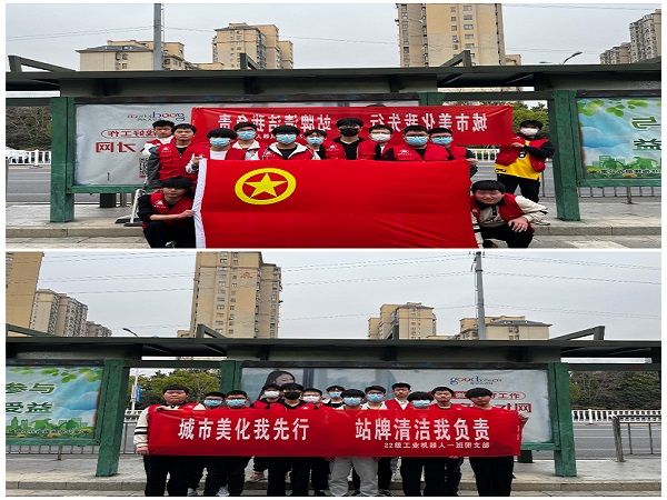 为进一步弘扬和传承雷锋精神,深化、推进学雷锋活动常态化,以雷锋精神教育、激励和引领广大青年学生树立担当民族复兴重任的远大理想, 3月14日,电气工程学院22工业机器人1班团支部前往学校东门前车站站牌,开展“城市美化我先行,站牌清洁我负责”公交站牌卫生清洁服务活动。