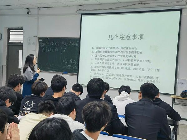 本次培训课由朱兰芳副教授为我院学生授课,授课期间朱兰芳老师简单介绍了手机相机的各种功能和设置,然后结合图片讲解了手机拍照的七个技巧,并分享了拍摄要点。随后,朱老师结合我院学生在拍摄班级活动照片时存在的问题进行指导和纠正。参加培训的学生聚精会神,认真听讲,全方位开发了自己手机潜藏的拍照功能,并通过现场实践教学,拓宽了摄影的知识面,掌握了更多了拍照技巧。