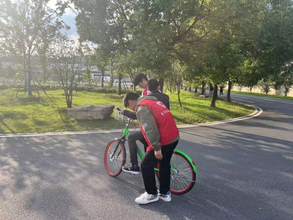 本次义务支教活动是我院志愿服务队对接星星家园开展的新学期首次志愿服务活动,队伍中也加入了大一新生力量。在队长章骏、傅素蘩的带领下,志愿者们相继到达星星家园,并按照既定流程为星星家园的孩子上手工课。心灵手巧的志愿者们与星星的孩子围坐在圆桌旁,他们一对一细心的指导着孩子们做着手工,不一会时间,桌上便摆满了孩子们精致的手工作品。随后,在星星家园园长的安排下,志愿者们充分发挥专业特长,协助星星家园维修水管、更换灯泡,他们用勤奋踏实的态度,践行着无私奉献的服务理念,得到了星星家园的一致好评。最后,志愿者们陪伴着孩子们开展户外骑行课,他们2-3人一组,分别指导星星的孩子骑行自行车。伴随着熟练程度的掌握,星星的孩子逐渐可以独立完成骑行,这一幕幕和谐友爱的画面最终也被定格在琅琊山脚下,成为了本次义务支教最暖心的场景之一。