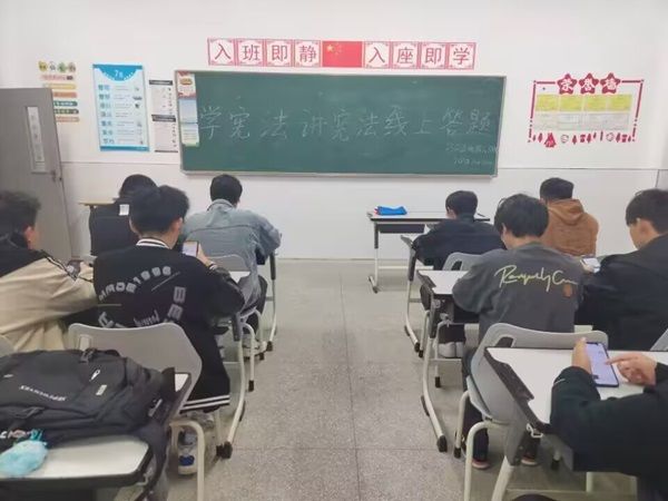 知识竞赛采用自我学习分散答题和集中培训集中答题相结合的模式,各大一新生班级利用晚自习时间进行集中答题,大二、大三学生利用空余时间进行分散答题以全覆盖形式积极动员全体学生参与到宪法知识的学习和答题活动中。