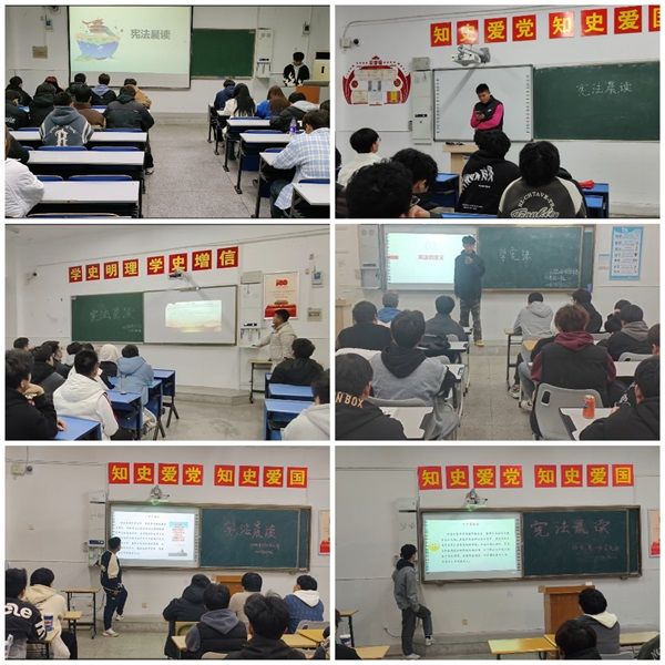 宪法是国家根本法,是治国安邦的总章程,具有最高的法律地位、法律权威、法律效力。一个国家若想安稳,离不开宪法的保障。宪法作为最大的一国之母法,是神圣庄严、不可侵犯的。为了进一步加强青年学生对宪法知识的深入了解,让宪法“声”入人心,我院团总支牵头组织23级各团支部开展 “宪法晨读”主题活动。