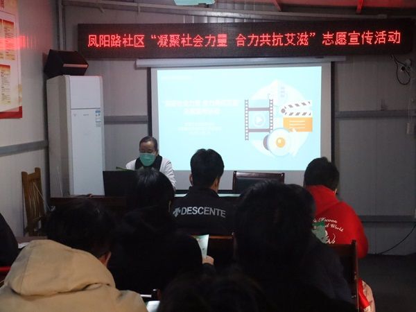 凤阳路社区通过派遣专业的社区医生向同学们和社区居民讲解如何预防艾滋,社区的居民们认真观看PPT且用手机记录下相关知识。在答题环节以提问的方式,询问所了解的知识反复巩固,以此加深社区居民们的防艾印象。最后在各位同学和社区工作者的配合下分发宣传手册,目的使更多的人认识到预防艾滋病的重要性和意义。