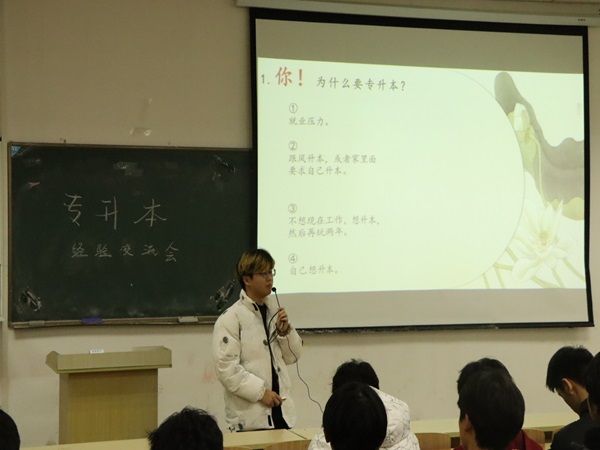 为学习贯彻习近平新时代中国特色社会主义思想,切实开展主题教育,提高同学们的自主学习能力,12月6日晚上7点,电气工程学院联合本科教育在南阶103开展专升本经验分享志愿活动。