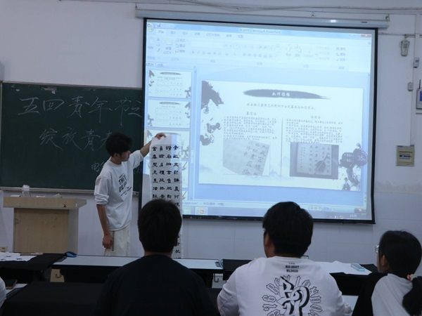 本次书法活动由书法社崔文兵主持。活动伊始,崔文兵以PPT、个人优秀书法展示以及视频的形式向大家讲述了书法的悠久历史。书法之韵常新久存,经典文化源远流长,紧接着崔文兵执笔,以稳健的笔法、流畅的线条向同学们演示了书法汉字的神韵。最后,同学们纷纷执笔实践尝试,认真运用学习的笔画技巧,活动在同学们的欢声笑语中圆满落幕。