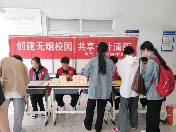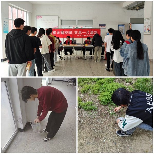 为了进一步做好校园公共场所控烟工作,积极践行中央关于公共场所禁烟的有关要求及教育部《关于在全国各级各类学校禁烟有关事项的通知》精神,减少烟头对校园环境的污染,提高学生的环保意识,增强学生对校园环境的责任感。电气工程学院学生会于4月28日在致新楼大厅举办了“创建无烟校园,共享一片清新”—捡烟头兑换礼品活动。