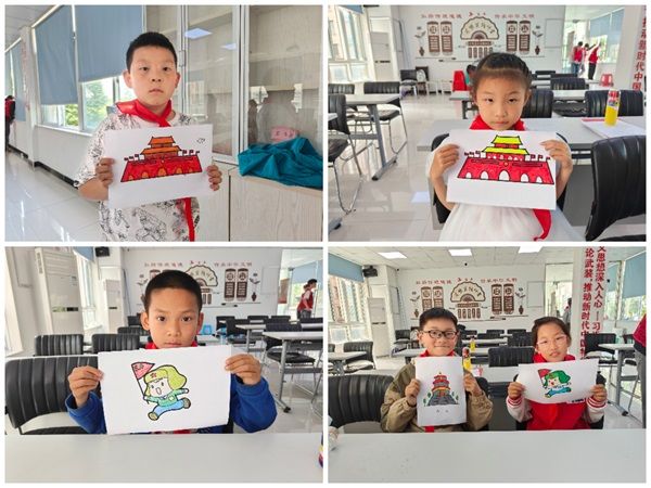在活动结束之际,志愿者们跟随小同学们一块填绘了五四精神小画报,他们一起绘出心中的“五四精神”!
